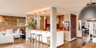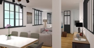 L’équipe Anna Rénov signe la rénovation tout corps d’état. L’équipe MCD signe l’escalier, la dalle de verre et les gardes corps métal & verre.