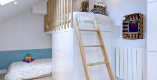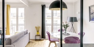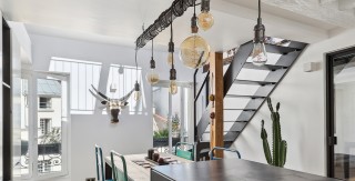 Bertrand a acheté un grand duplex dans un programme neuf, en dernier étage. Une superbe terrasse de 130m² vue sur tout Paris. Deux plateaux de 70m² chacun. Les 3 chambres et salle de bain sont au niveau bas. Les pièces de vie sont à l’étage et donnent sur la terrasse.