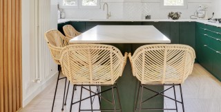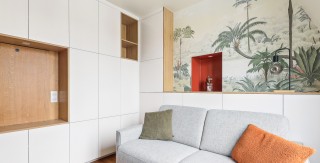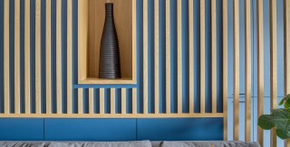 Une autre vision du système constructif Homelib, avec la création d’un patio central ouvert sur une terrasse, pour une perte de notion entre intérieur et extérieur. Le bois est assumé, les murs périphériques gardent la structure bois apparente. Des volets coulissants en bois clair viennent rythmer les façades.